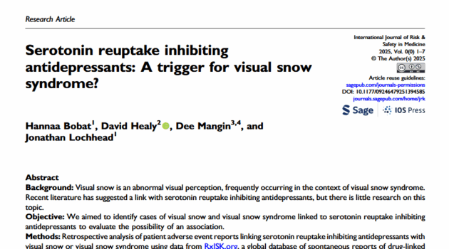 New article We are pleased to announce the publication of a new peer-reviewed article based on data from RxISK: “Serotonin reuptake inhibiting antidepressants: A trigger for visual snow syndrome?” It can be freely viewed and downloaded. We would be grateful if you could share it as widely as possible. To our knowledge, it is the…