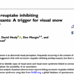 New article We are pleased to announce the publication of a new peer-reviewed article based on data from RxISK: "Serotonin reuptake inhibiting antidepressants: A trigger for visual snow syndrome?" It can be freely viewed and downloaded. We would be grateful if you could share it as widely as possible. To our knowledge, it is the biggest series of visual snow cases linked … [Read more...] about Can Antidepressants Cause Visual Snow Syndrome?