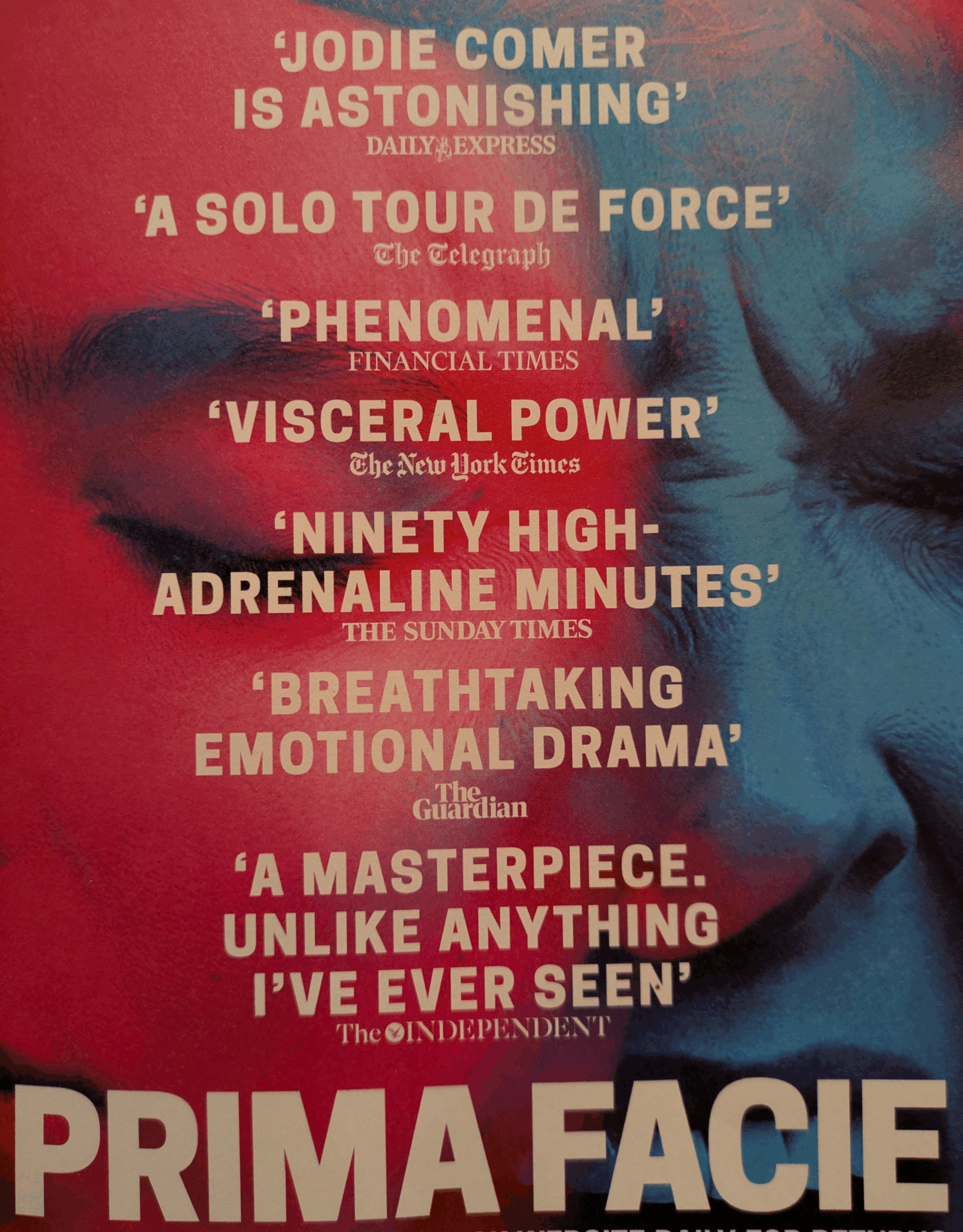 Prima has won multiple awards – as has Jodie Comer, who features in one of its one-woman iterations. Tickets to a live performance are impossible to get. Every so often a video version is available to rent from the National Theatre. In the meantime here is the Prima Facie Transcript.